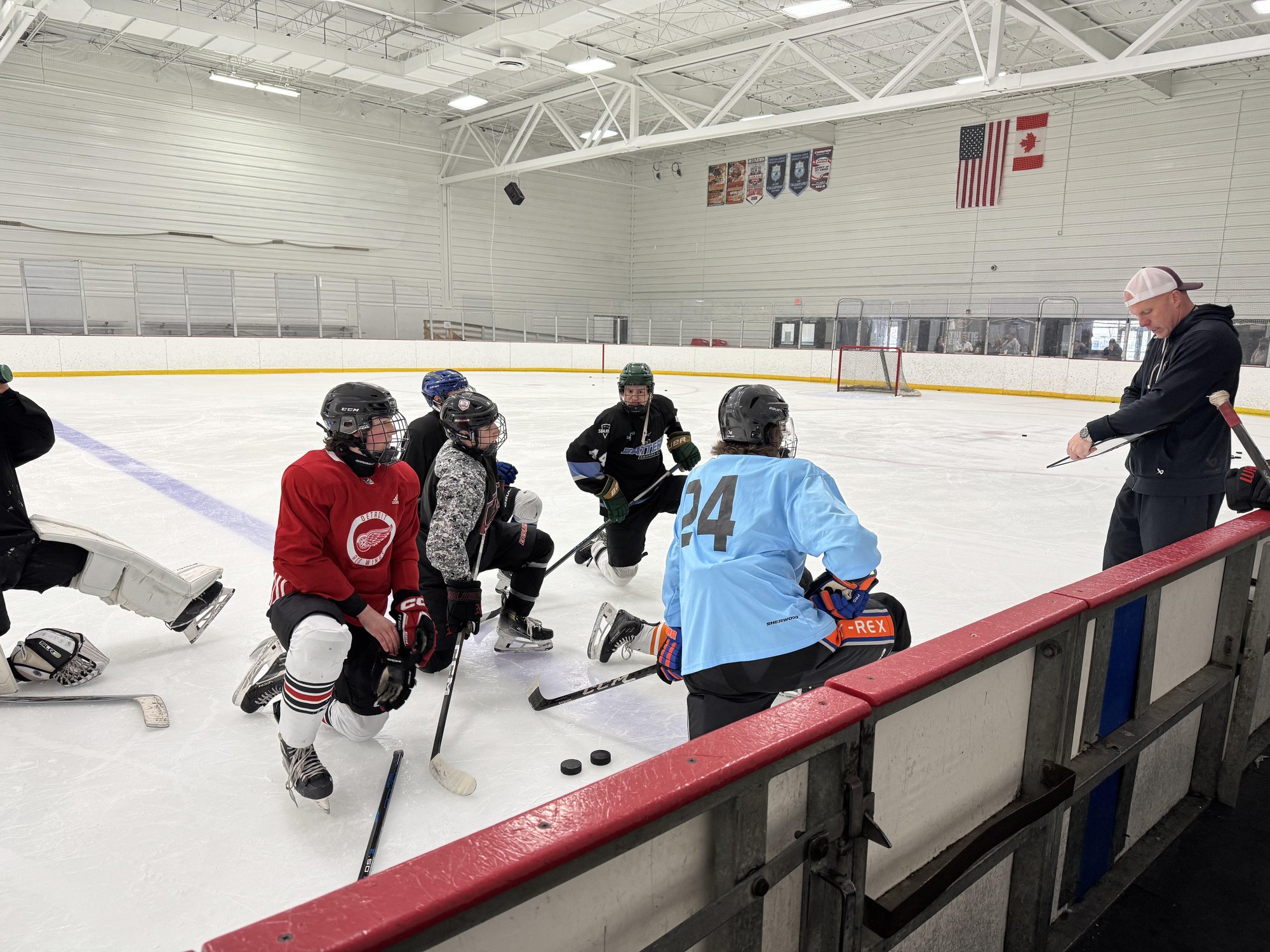 The schedule consists of four ice sessions and 4 classroom/video sessions for the players. It also has an informative session for the parents! Two ice sessions and classroom sessions are on Saturday and two on Sunday as well.